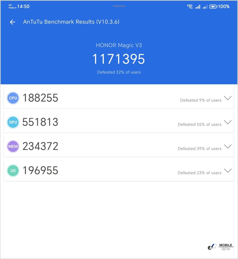 HONOR Magic V3 ขับเคลื่อนด้วยชิปเซ็ต Qualcomm SM8650-AB Snapdragon 8 Gen 3 บนสถาปัตยกรรม 4 นาโนเมตร ประมวลผล Octa Core ความเร็ว 3.3GHz ผสานด้วยหน่วยประมวลผลกราฟิก Adreno 750 บวกกับ RAM ที่ให้มาถึง 12GB และหน่วยความจำภายใน 512GB เรียกว่าเป็นสเปกเรือธงที่แรงใช้ได้เลยครอบคลุมทุกการใช้งานตั้งแต่ใช้งานทั่วไปไปจนถึงการเปิดใช้งาน Multitask แบบหนักๆ ได้อย่างสบาย ไม่มีอาการหน่วงหรือกระตุกให้เห็นเลย