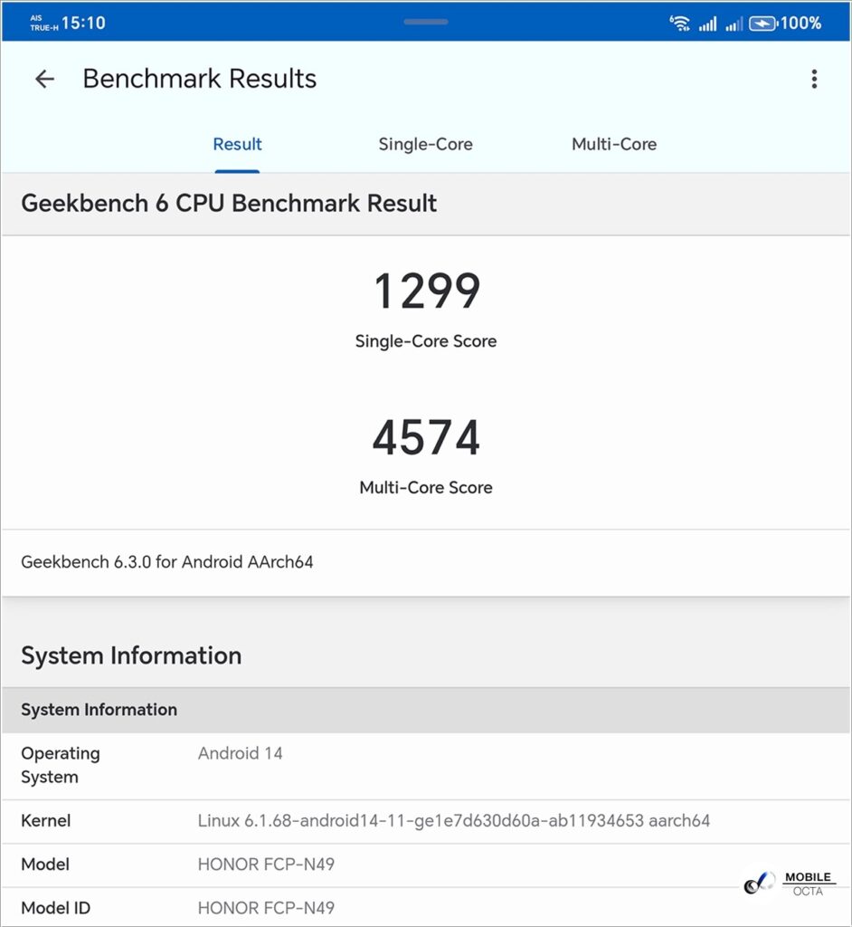 ผลทดสอบประสิทธิภาพผ่านแอป GeekBench 6
