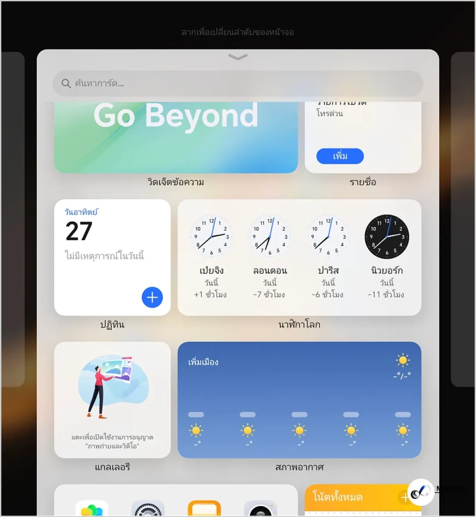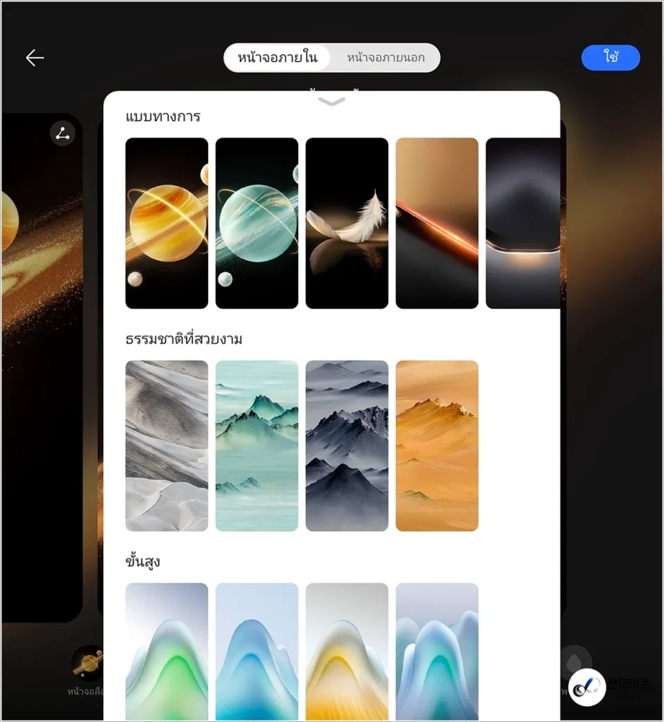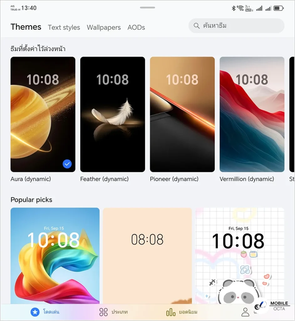 สามารถเลือกเปลี่ยนภาพพื้นหลัง ธีม ซึ่งมีให้เลือกใช้งานอย่างหลากหลาย สามารถดาวน์โหลดมาใช้งานได้จาก Themes และเลือกวิดเจ็ดมาวางบนหน้าจอได้ตามใจชอบ