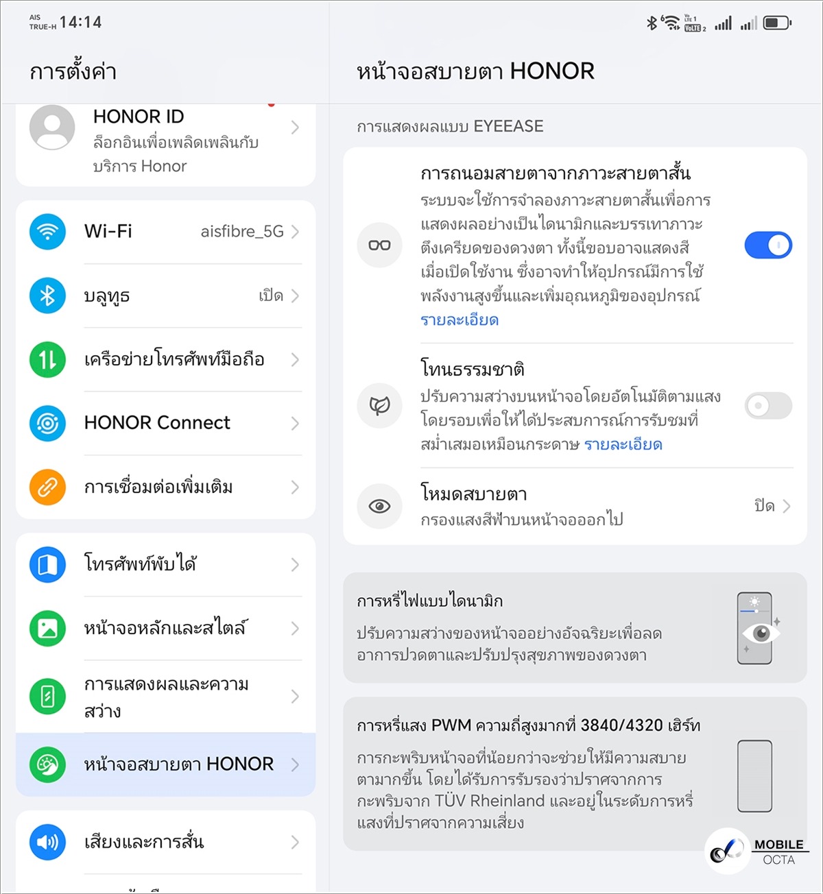 นอกจากฟีเจอร์ที่ช่วยในการทำงานแล้ว HONOR Magic V3 ยังมาพร้อม Dynamic Dimming และ AI Defocus Eye Protection ที่ถูกออกแบบมาเพื่อปกป้องดวงตาของผู้ใช้โดยเฉพาะ Dynamic Dimming จำลองจังหวะการเคลื่อนไหวของแสงธรรมชาติเพื่อกระตุ้นกล้ามเนื้อตา ช่วยลดอาการเมื่อยล้าจากการใช้สมาร์ตโฟนเป็นเวลานาน