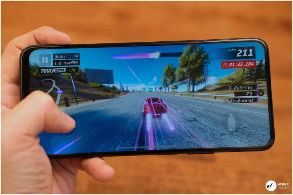 และเกม PUBG Mobile ที่มีภาพกราฟิกสูงแบบสามมิติ ตั้งค่ากราฟิกระดับสมดุล และเฟรมเรทระดับกลาง สามารถเล่นได้อย่างไหลลื่น ไม่มีอาการหน่วง หรือกระตุกให้เห็น และเล่นนานๆ เครื่องก็ไม่มีอาการร้อนอีกด้วย โดยรวมแล้วถือว่าสอบผ่าน