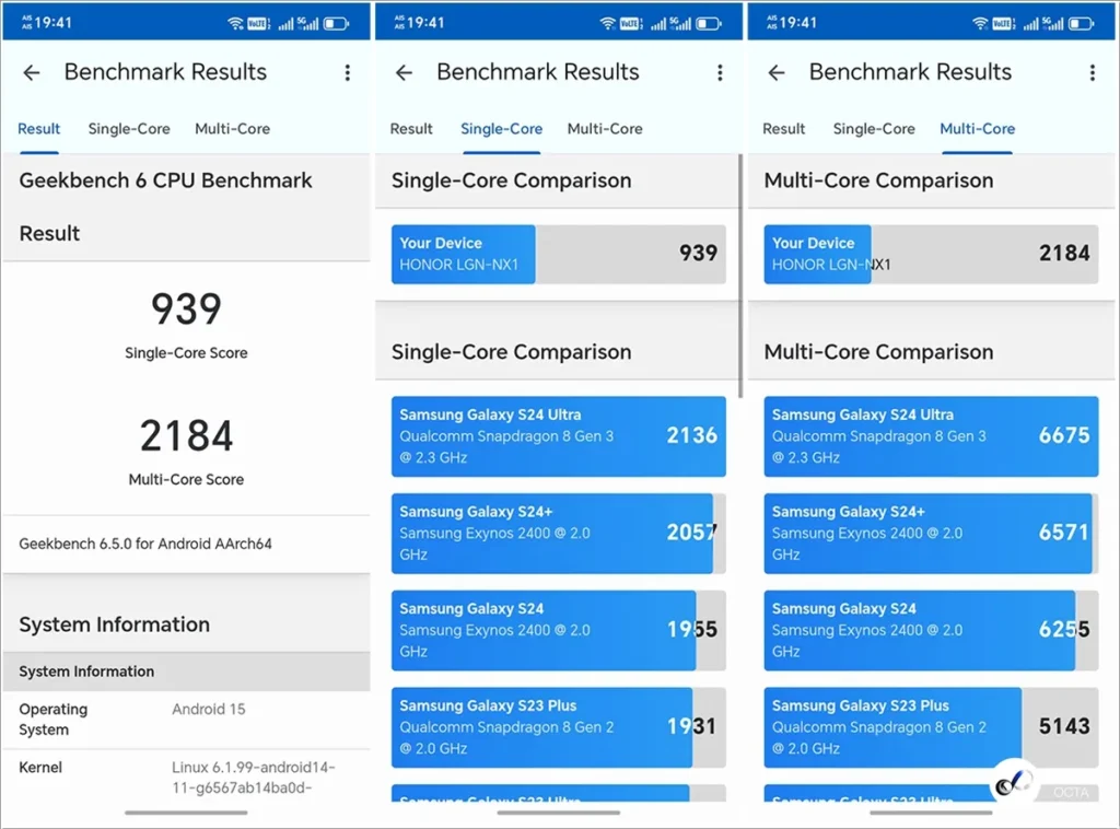 ผลการทดสอบประสิทธิภาพของ HONOR X7d 5G ผ่านแอป GeekBench