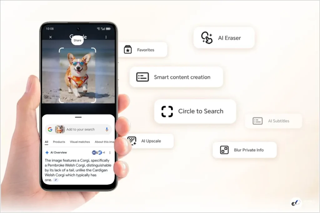 และสามารถทำหน้าที่เป็น Shortcut ภายในแอปต่าง ๆ ได้ทันที เช่น ขณะดูภาพถ่ายในอัลบั้ม เพียงกดปุ่ม AI ค้างไว้ ระบบจะแสดงตัวเลือกการแต่งภาพต่าง ๆ ให้คุณใช้ได้ทันทีโดยอัตโนมัติ