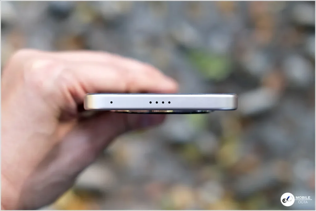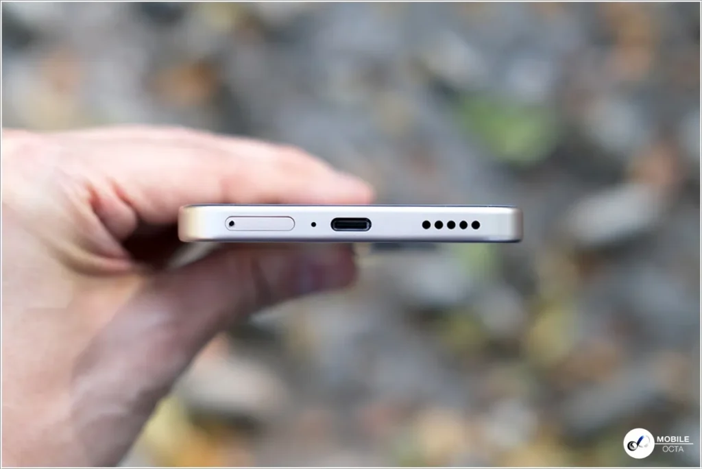 ด้านท้ายเครื่องมีช่องใส่ซิมการ์ด, ช่องไมโครโฟนสำหรับสนทนา, พอร์ต USB Type-C และช่องลำโพงเสียง