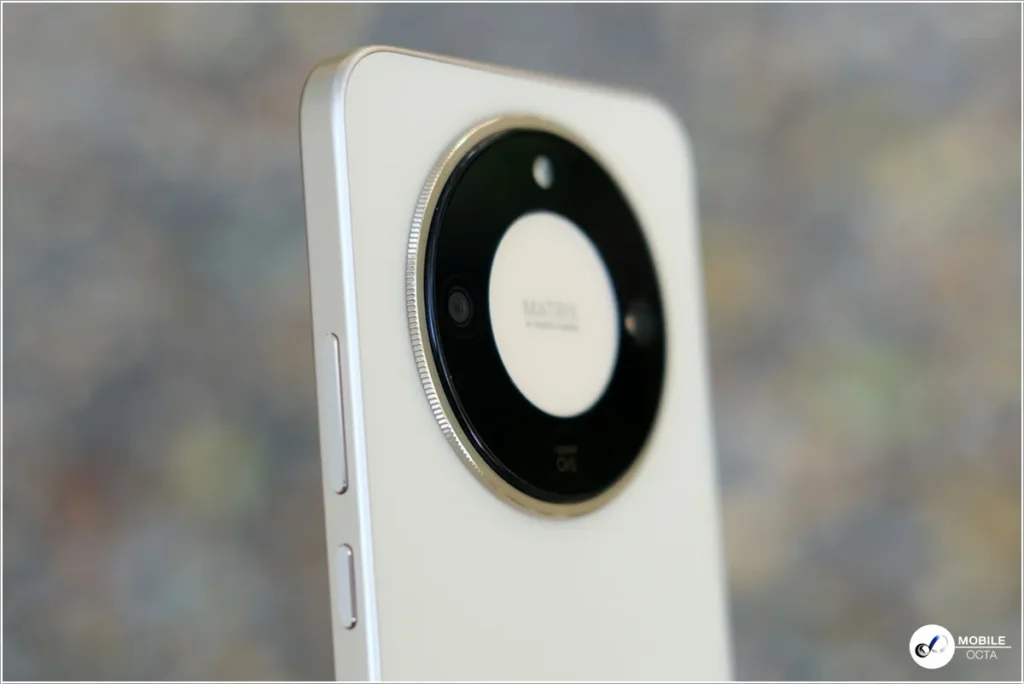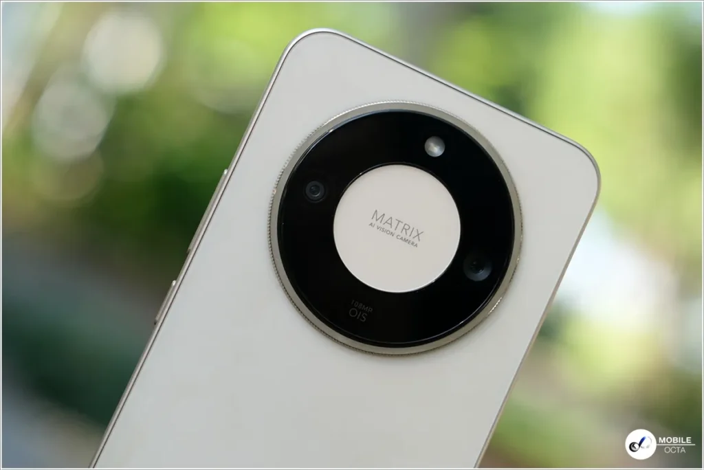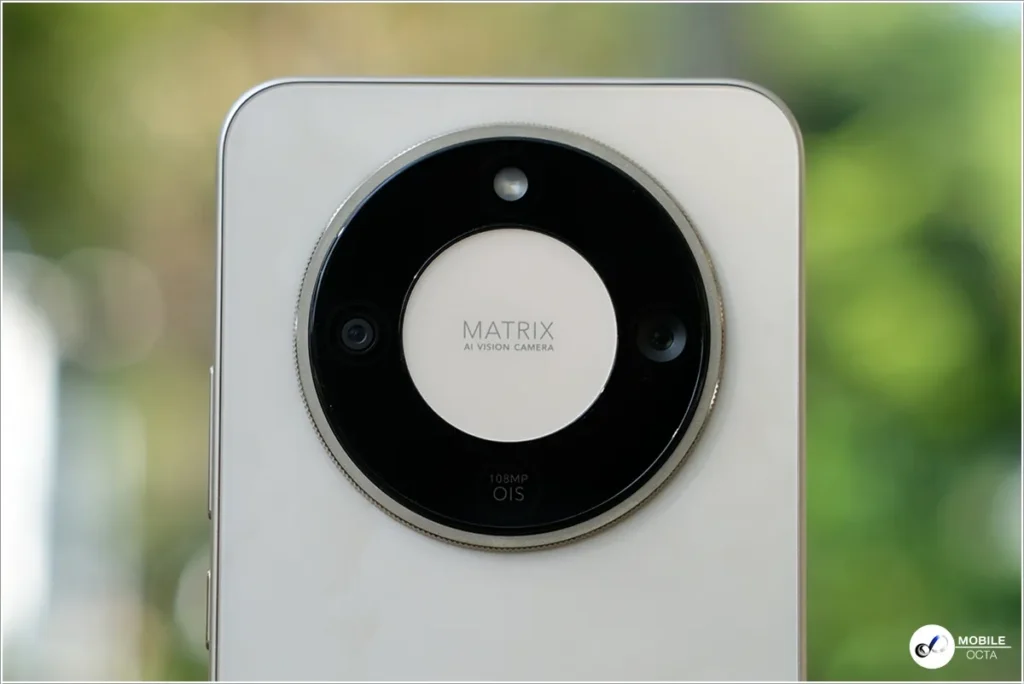 ภายในวงแหวนมีการจัดวางเลนส์กล้องและไฟแฟลช LED อย่างสมมาตร ให้ความรู้สึกที่สมดุลและลงตัว และขอบวงแหวนมีการตัดขอบเงาเพิ่มมิติ ตัดกับพื้นผิวของฝาหลังอย่างชัดเจน ตรงกลางสกรีนคำว่า “MATRIX AI VISION CAMERA” เพื่อบ่งบอกถึงประสิทธิภาพของเทคโนโลยีการถ่ายภาพ