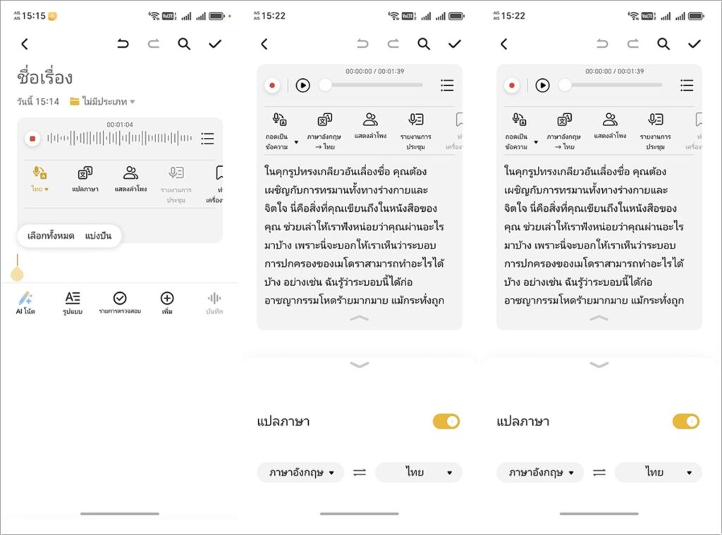นอกจากนี้ยังมี AI Translation พร้อมโหมด Simultaneous Interpretation และ Face-to-Face ใช้คุยกับคนต่างภาษาง่ายขึ้น และยังเอาใจสายคอนเทนต์ด้วย AI Subtitles ที่ช่วยถอดเสียงและแปลซับไตเติลในวิดีโอได้ทันที แม้อยู่ในที่อับสัญญาณหรือ ไม่มีอินเทอร์เน็ต ก็ยังใช้งานได้ ล้ำสุด ๆ