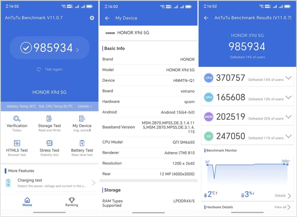 ผลการทดสอบประสิทธิภาพของ HONOR X9d 5G ผ่านแอป Antutu