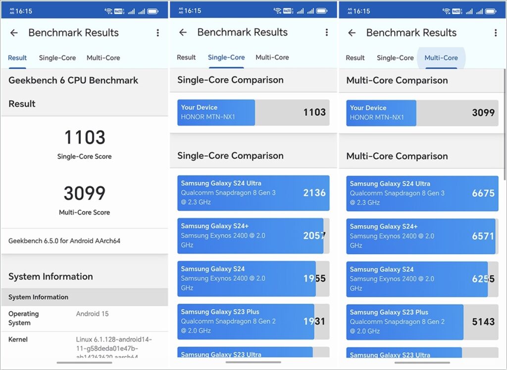 ผลการทดสอบประสิทธิภาพของ HONOR X9d 5G ผ่านแอป GeekBench