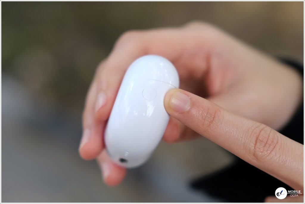 ด้านขวาข้างเคสชาร์จมีปุ่มกดสำหรับเชื่อมต่อกับสมาร์ตโฟน หรืออุปกรณ์อื่นที่รองรับ