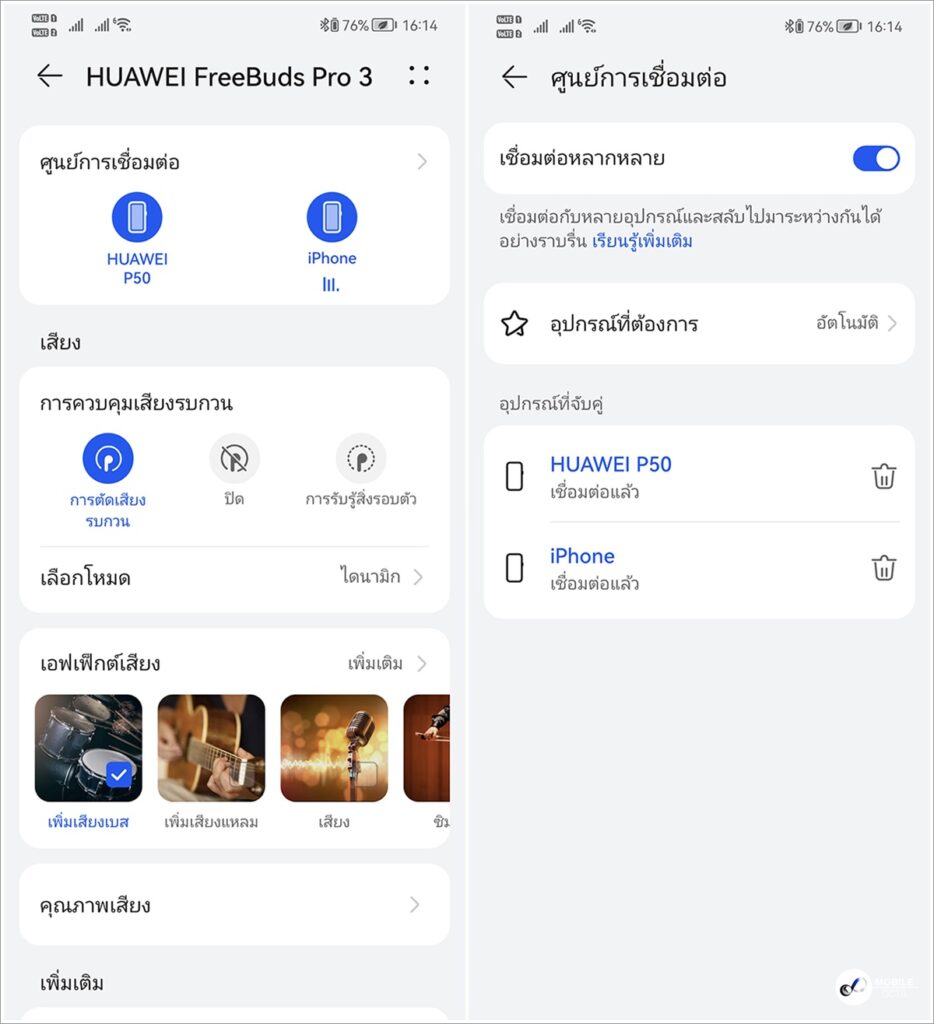 HUAWEI FreeBuds Pro 3 สามารถเชื่อมต่อกับอุปกรณ์สองเครื่องในเวลาเดียวกัน และสลับเสียงระหว่างอุปกรณ์ iOS และ Android โดยไม่ต้องจับคู่และตัดการเชื่อมต่อซ้ำๆ