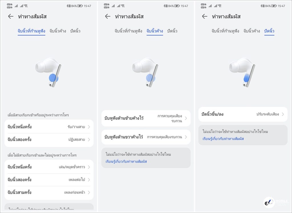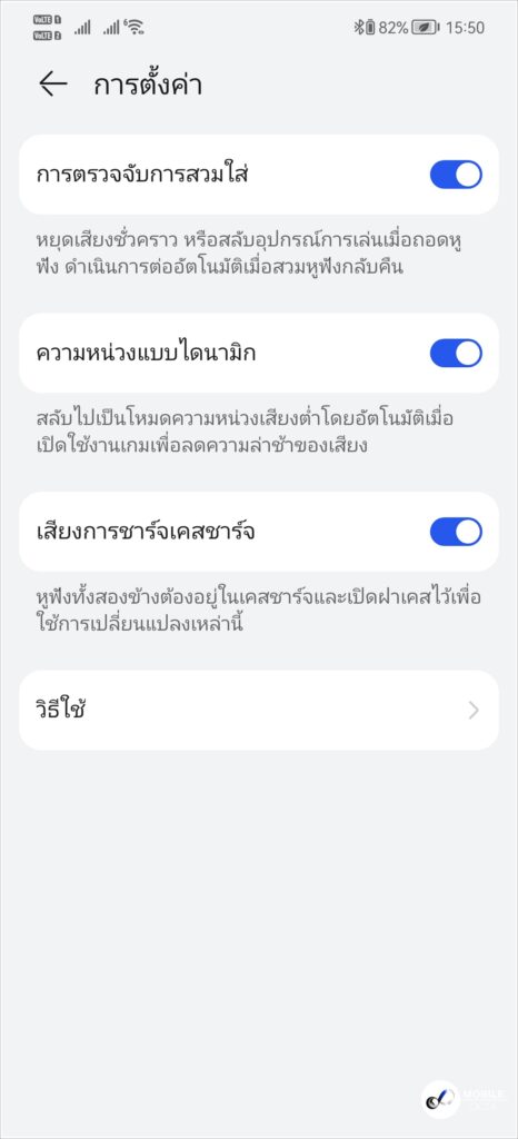 สามารถตั้งค่าการควบคุมเสียงรบกวนได้ทั้งการตัดเสียงรบกวน และการรับรู้สิ่งรอบตัว