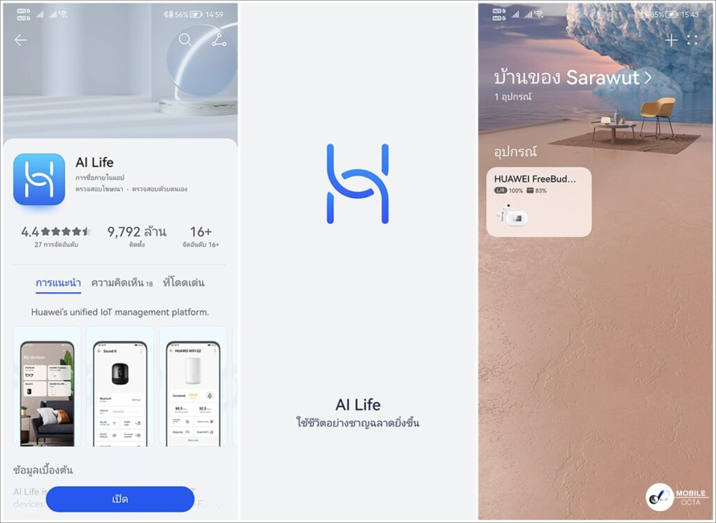 นอกจากนี้ถ้าเชื่อมต่อกับสมาร์ตโฟน HUAWEI ก็จะมีลูกเล่นต่างๆ ให้ใช้งานมากขึ้น โดยดาวน์โหลดแอปพลิเคชันที่มีชื่อว่า AI Life ผ่านทาง App Gallery มาติดตั้งในเครื่องก่อน