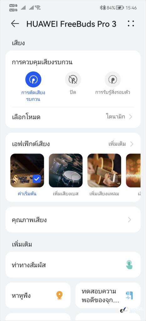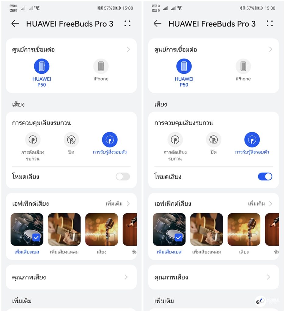ส่วนโหมดการรับรู้สิ่งรอบตัวสามารถตั้งค่าเปิดปิดการปรับปรุงเสียงได้