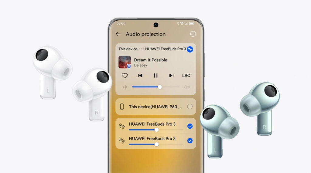 ด้วยฟังก์ชัน Audio Sharing เชื่อมต่อหูฟัง FreeBuds Pro 3 สองหูฟังเพื่อฟังเพลงจากหูฟัง 2 คู่ผ่านอุปกรณ์ตัวเดียวได้