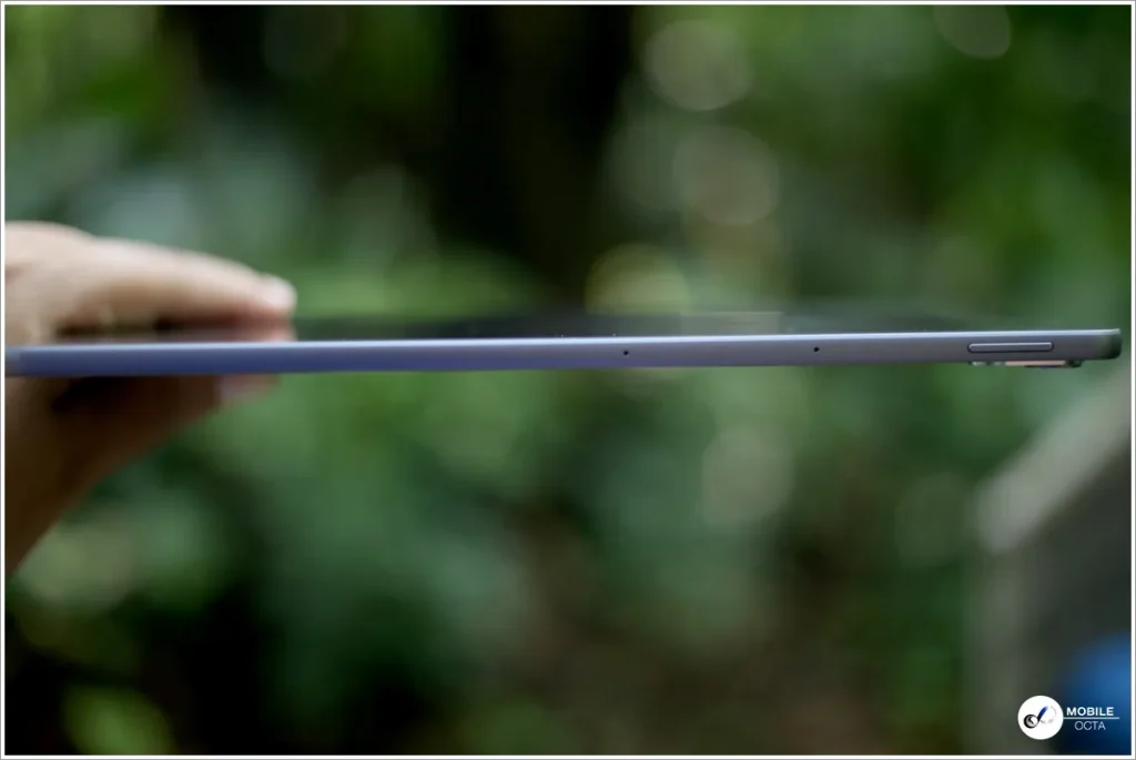 เริ่มกันที่วัสดุงานประกอบของ HUAWEI MatePad 11.5 PaperMatte Edition ก่อนเลยครับ เพราะแรกสัมผัสบอกเลยว่าให้ฟิลลิ่งการใช้งานที่ดีมาก มีตัวเครื่องบางเพียง 6.85 มิลลิเมตร และน้ำหนักเบาเพียง 499 กรัมเท่านั้น แถมยังใช้วัสดุที่พรีเมี่ยม แน่นหนาและสวยงาม มีขอบหน้าจอที่บางเท่ากันทุกด้าน และขอบหน้าจอด้านบนมีกล้องหน้าถูกวางไว้บริเวณตรงกลาง