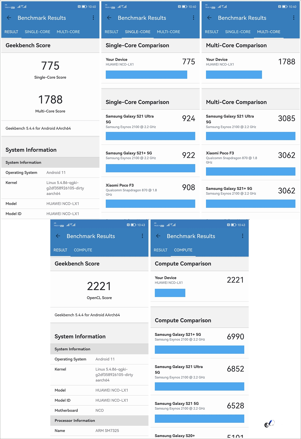 ผลการทดสอบประสิทธิภาพของ HUAWEI nova 10 ผ่านแอป GeekBench 5
