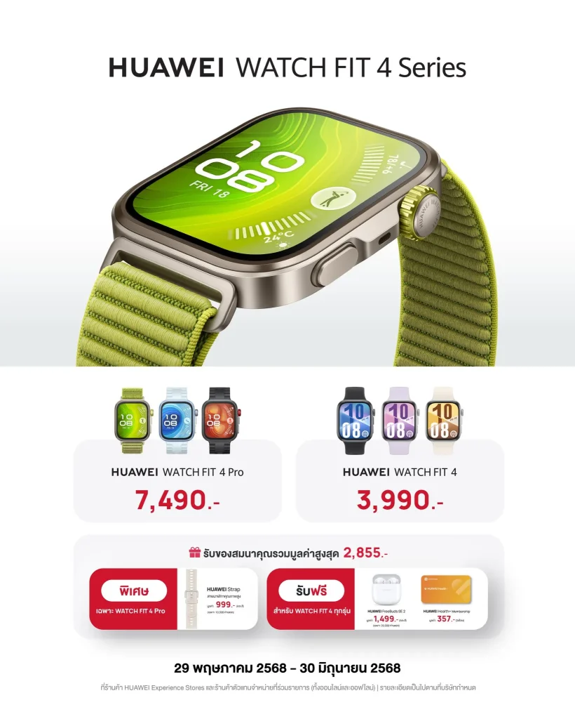 HUAWEI WATCH FIT 4 Series พร้อมให้คุณเป็นเจ้าของแล้ววันนี้ ในราคาและโปรโมชั่นสุดคุ้ม เฉพาะ 29 พฤษภาคม 2568 – 30 มิถุนายน 2568 เท่านั้น