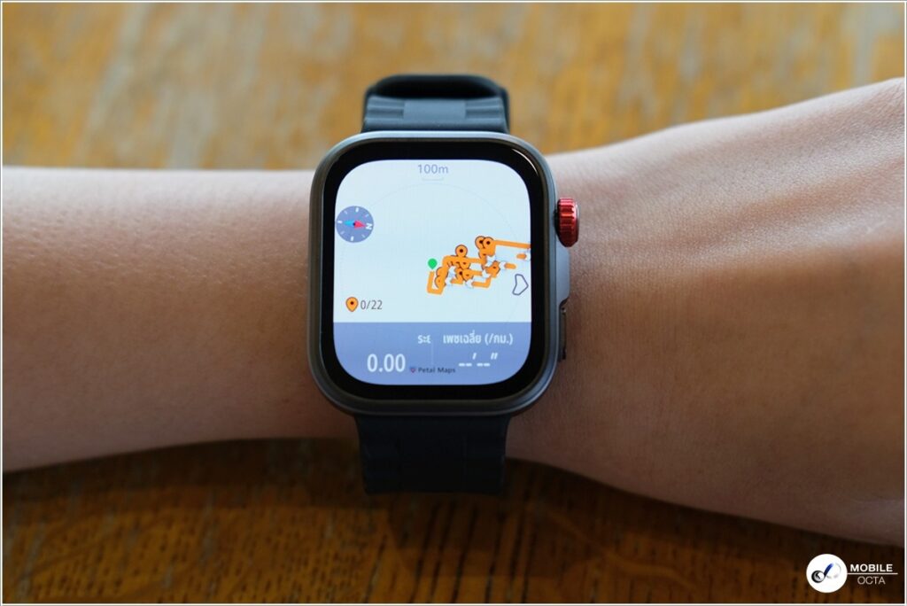 อีกทั้งยังมีการนําทาง Waypoint จึงสามารถทําเครื่องหมายจุดสําคัญได้ตลอดเส้นทาง ขณะเดียวกันสมาร์ทวอทช์ยังบันทึกข้อมูลต่าง ๆ ทั้งความเร็ว ระยะทาง เวลา ความเร็วเฉลี่ย รวมถึงอัตราการเต้นของหัวใจ และปริมาณแคลอรี่ที่ถูกเผาผลาญ