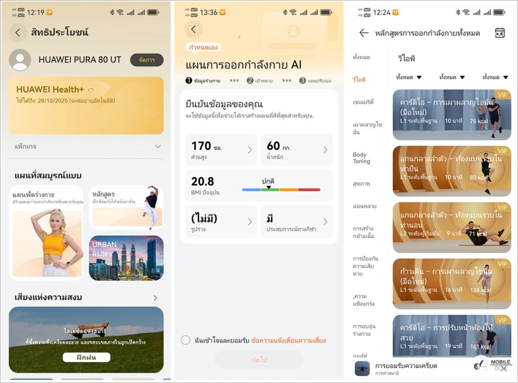HUAWEI WATCH GT 6 Pro ทำงานร่วมกับแอป HUAWEI Health บนอุปกรณ์ Android และ iOS เพื่อให้ข้อมูลเชิงลึก และล่าสุดได้นำเสนอบริการใหม่ Health+ ซึ่งให้คุณเข้าถึงสิทธิประโยชน์สุดพิเศษมากมาย รวมถึงหลักสูตรการออกกําลังกายระดับเริ่มต้นไปจนถึงขั้นสูง โดยมีฟีเจอร์ใหม่นอกเหนือจากแอปเวอร์ชันปกติ แต่เป็นบริการสมัครสมาชิก อย่างไรก็ตาม HUAWEI ให้ทดลองใช้ฟรี 3 เดือน เมื่อซื้อ HUAWEI WATCH GT 6 Pro