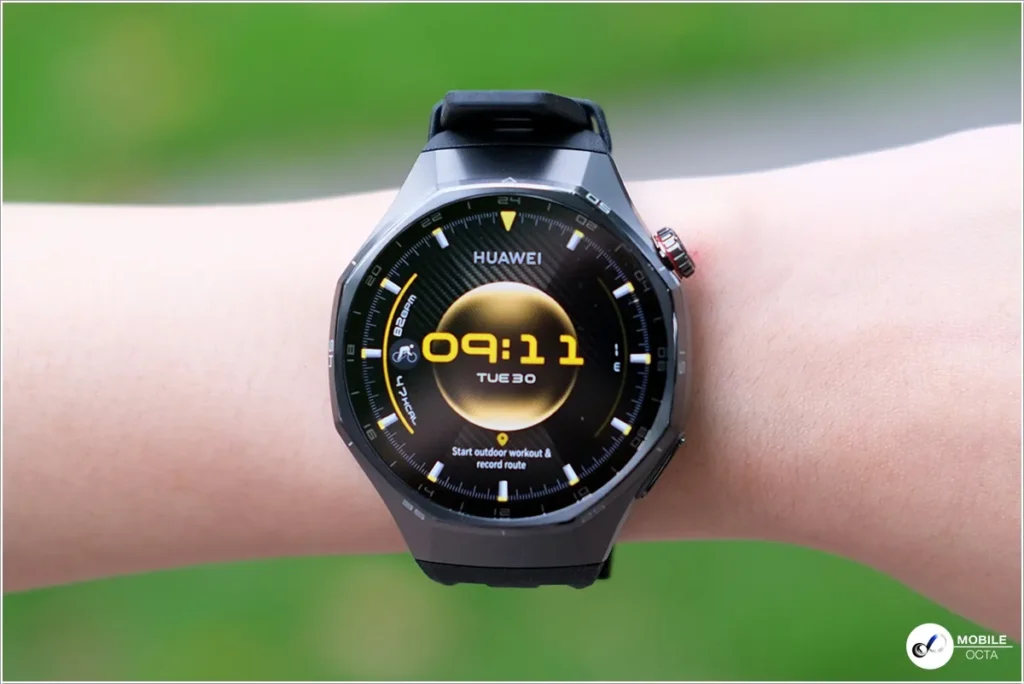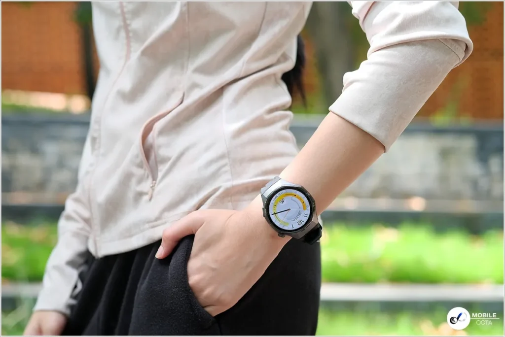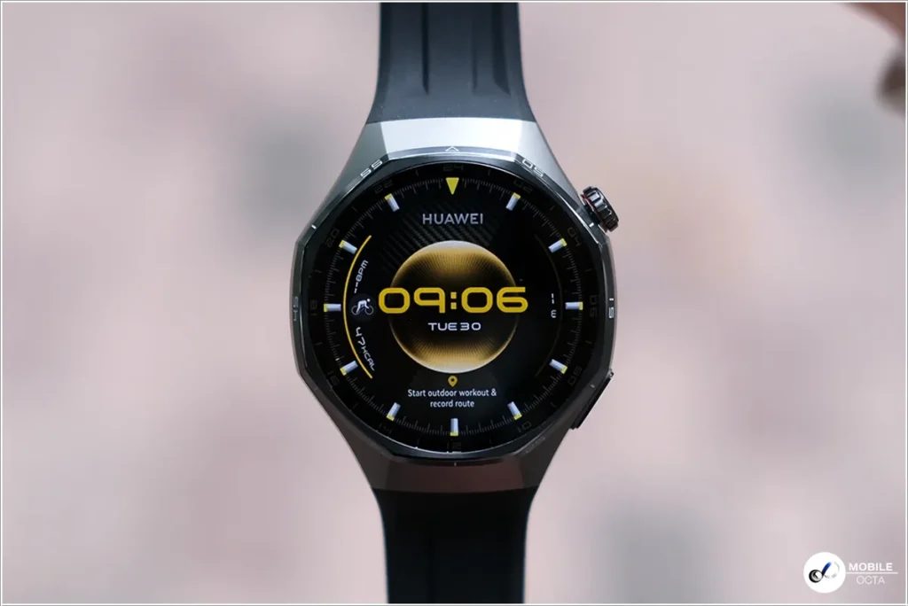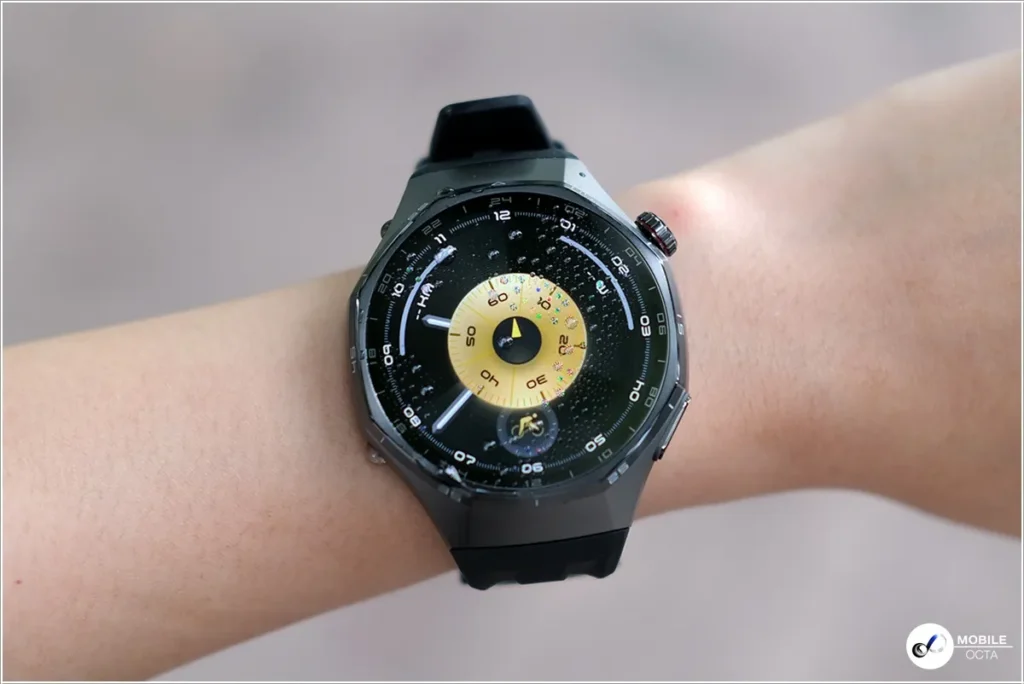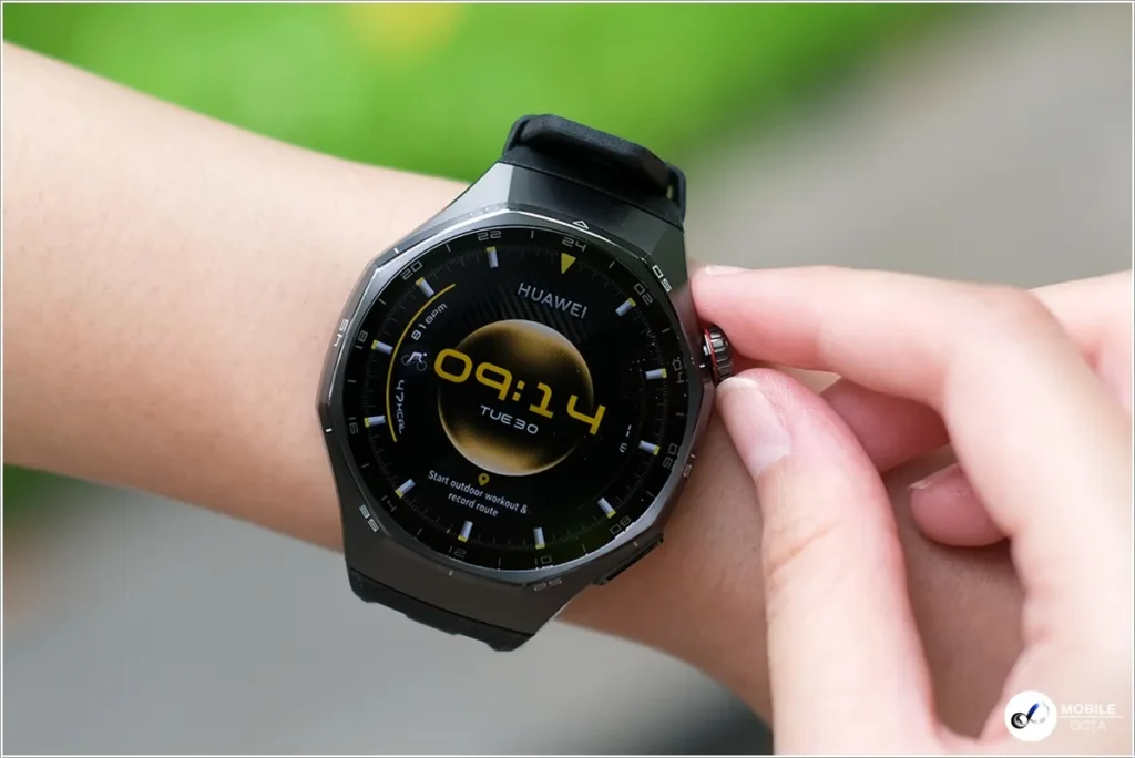 HUAWEI WATCH GT 6 Pro มาพร้อมกับขนาด 46 มม. พร้อมการปกป้องสามระดับด้วยการเคลือบโลหะแข็งพิเศษ โลหะผสมไทเทเนียมเกรดอากาศยาน ฝาครอบด้านหน้าทําจากกระจกแซฟไฟร์และตัวเรือนด้านหลังเซรามิกนาโนคริสตัล