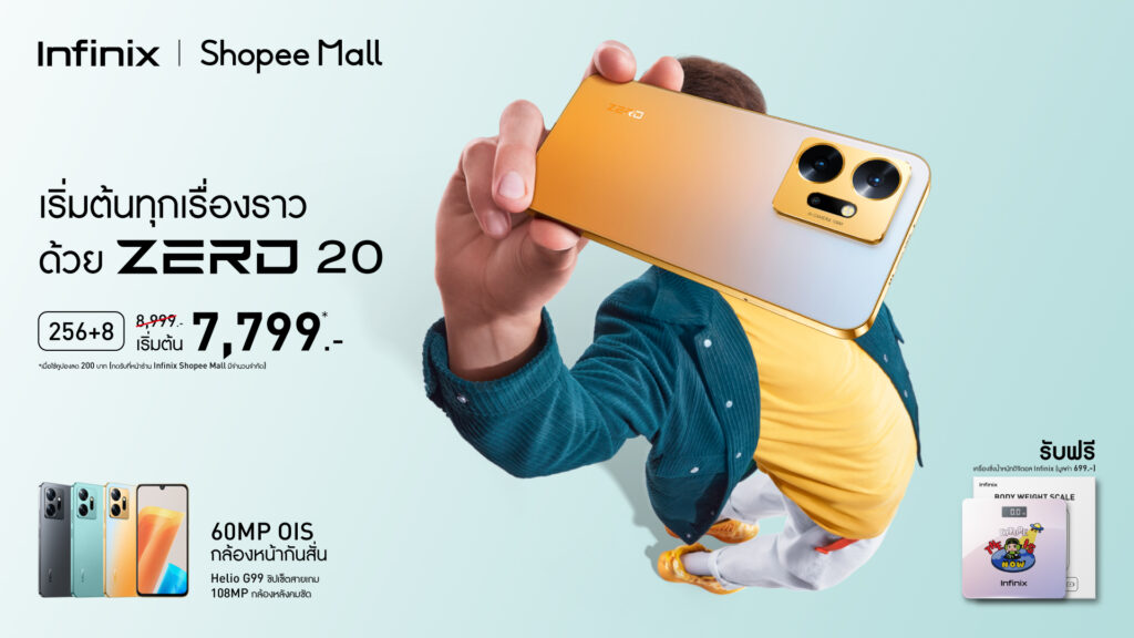 ทั้งนี้ Infinix ZERO 20 วางจำหน่ายในประเทศไทยอย่างเป็นทางการแล้ววันนี้ในราคา 8,999 บาท ผู้สนใจสามารถซื้อสินค้าได้ที่ร้าน Infinix Shopee Mall บน Shopee คลิกสั่งซื้อได้ที่ https://cutt.ly/1NLm2fN หรือดูรายละเอียดเพิ่มเติมได้ที่เว็บไซต์ https://www.infinixmobility.com/th