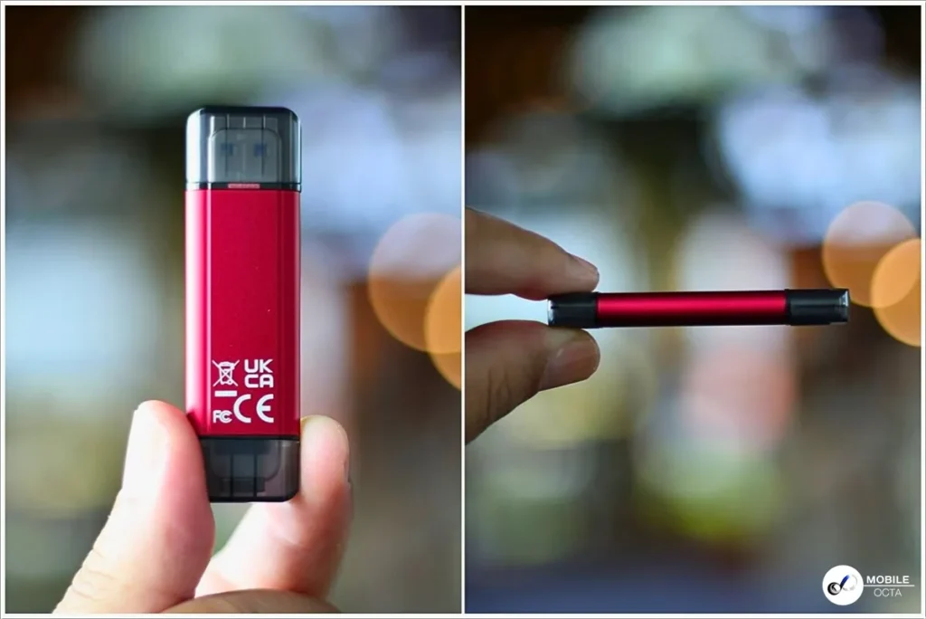 - ดีไซน์ไร้สาย: ตัวเครื่องมีดีไซน์เพรียวบางคล้ายแฟลชไดรฟ์ทั่วไป ทำให้การโอนถ่ายข้อมูลระหว่างอุปกรณ์เป็นเรื่องง่ายเพียงแค่เสียบใช้งานทันที