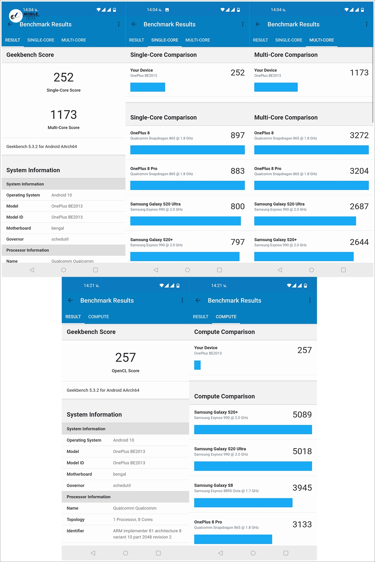 ผลทดสอบประสิทธิภาพ OnePlus Noed N100 บนแอป GeekBench