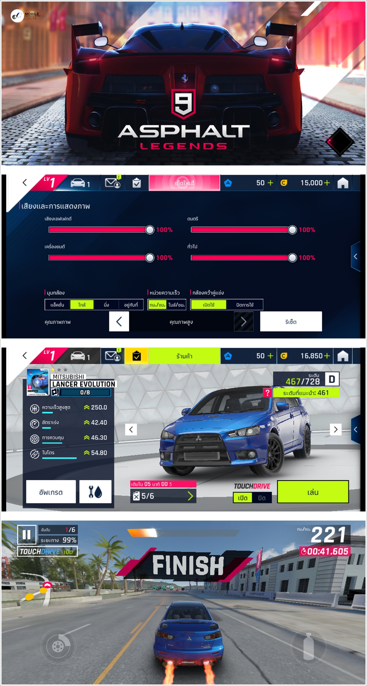 Asphalt 9 เลือกปรับคุณภาพภาพแบบคุณภาพสูง ด้วยประสิทธิภาพของชิปเซ็ท Snapdragon 460 สามารถเล่นได้อย่างคมชัด และไหลลื่น ไม่มีอาการแลคให้หงุดหงิดใจ