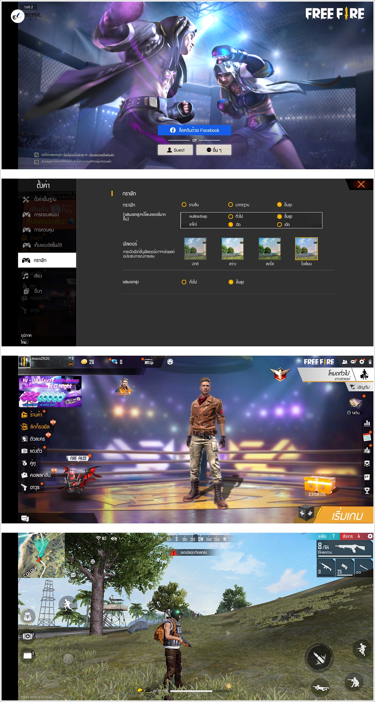 สำหรับ Free Fire เกม Tactical-FPS สามมิติเต็มรูปแบบ ก็เป็นอีกหนึ่งเกมที่ต้องการทรัพยากรขั้นสูง โดยเลือกโหมดกราฟิกในระดับขั้นสูง และเฟรมเรทระดับขั้นสูง ซึ่งไม่มีปัญหากับ OnePlus Nord N100 แต่อย่างใด สามารถตอบสนองต่อการใช้งานได้อย่างไหลลื่น ผสานกับหน้าจอที่มี Refresh Rate ระดับ 90Hz ซึ่งช่วยให้เกมลื่นไหลมากยิ่งขึ้น