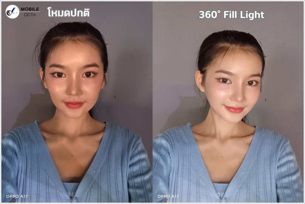 ทดสอบกล้องหน้าในสภาพแสงน้อย พร้อมเปิด Fill light ซึ่งจะให้แสงที่นุ่มนวล ภาพดูมีมิติและไม่สว่างจ้าจนเกินไป โดยใช้แสงสว่างจากหน้าจอแสดงผลทำหน้าที่เป็นแฟลช เพื่อช่วยให้การถ่ายเซลฟี่ในที่แสงน้อยหรือในที่ไม่มีแสงได้อย่างสวยงามในทุก ๆ สถานการณ์