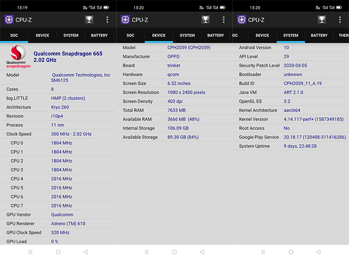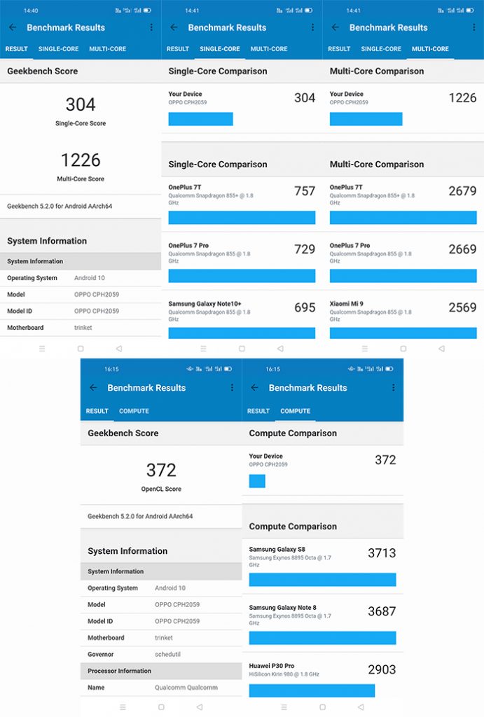 ผลการทดสอบประสิทธิภาพของ OPPO A92 ผ่านแอป GeekBench