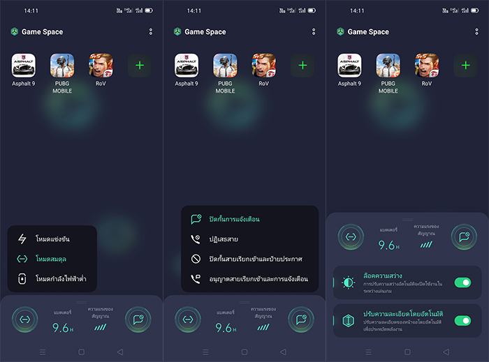 นอกจากนี้ยังมาพร้อมฟีเจอร์ Game Space ที่ผู้ใช้สามารถบล็อกการแจ้งเตือน Pop Up ต่างๆ ขณะที่กำลังเล่นเกม และล็อกระดับความสว่างของหน้าจอได้