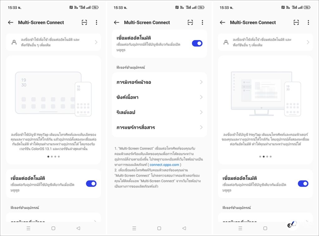 ด้วยการเชื่อมต่อที่ลื่นไหล เพียงลงชื่อเข้าใช้บัญชี HeyTap ของคุณบนอุปกรณ์หลายเครื่อง และ