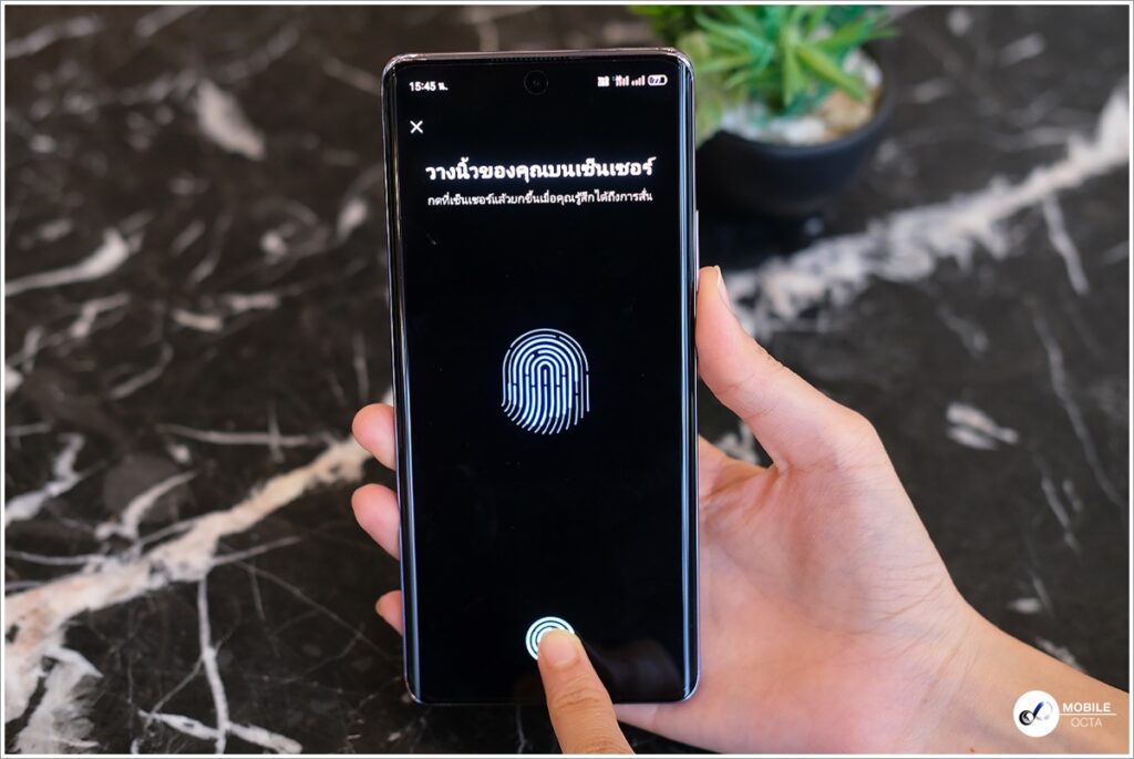 รองรับการปลดล็อคหน้าจอ ล็อคแอป และเก็บข้อมูลส่วนตัวด้วยการสแกนลายนิ้วมือ โดยติดตั้งเซ็นเซอร์สแกนลายนิ้วมือฝังใต้หน้าจอ