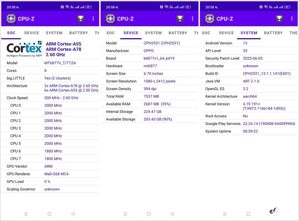 โดย OPPO Reno10 5G ใช้ชิปเซ็ท Dimensity 7050 ที่ CPU ทำความเร็วได้สูงถึง 2.6GHz ด้วยกระบวนการ 6 นาโนเมตรของ TSMC ช่วยเรื่องการใช้งานแอป เล่นเกมไม่กระตุก จึงทำให้การเล่นเกมที่มีกราฟิกหนักๆ ลื่นไหล ไม่มีสะดุด
