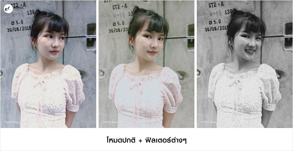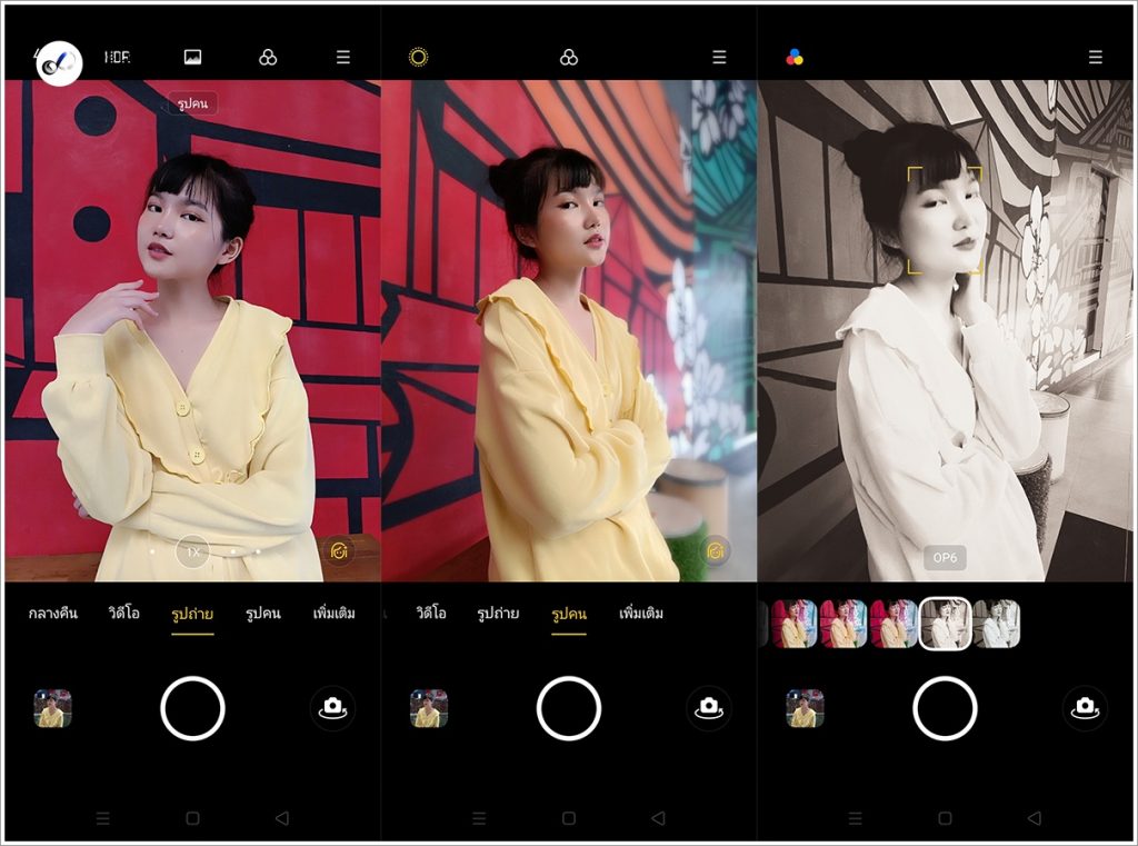 ภาพถ่ายด้วยโหมดรูปคน ตั้งค่าเปิดโบเก้ 60% พร้อมตั้งค่าเลือก AI Beauty 60% และเลือกฟิลเตอร์ที่มีให้เลือกถึง 7 แบบ โดยฟิลเตอร์ลำดับที่ O6 และ O7 จะเป็นฟิลเตอร์ในแนววินเทจ ให้ความรู้สึกถึงวันวานที่น่าจดจำ ฟิลเตอร์แนววินเทจ ออกแบบมาเพื่อความสนุกในการถ่ายภาพบุคคลที่หลากหลายมากขึ้น ทั้งยังมีตัวเลือกสำหรับการปรับแต่งภาพให้เป็นสไตล์ของตนเองอีกด้วย