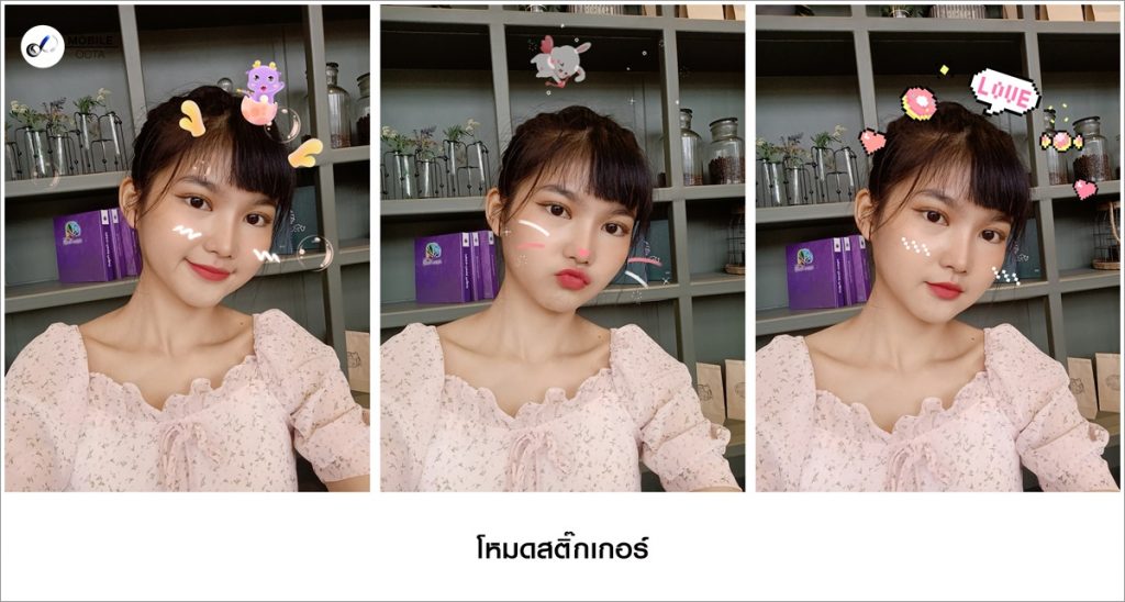 ภาพถ่ายด้วยโหมดสติ๊กเกอร์ที่มีให้เลือกหลายแบบตามใจชอบ