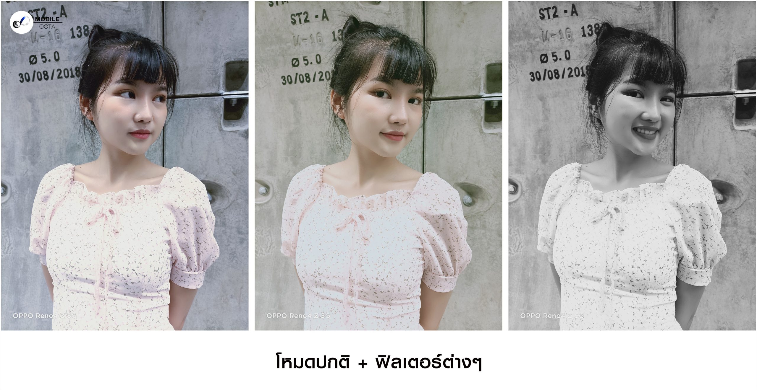 ภาพถ่ายด้วยโหมดรูปถ่ายปกติ พร้อมตั้งค่าเลือก AI Beauty 60% และเลือกฟิลเตอร์ที่มีให้เลือกถึง 10 แบบ