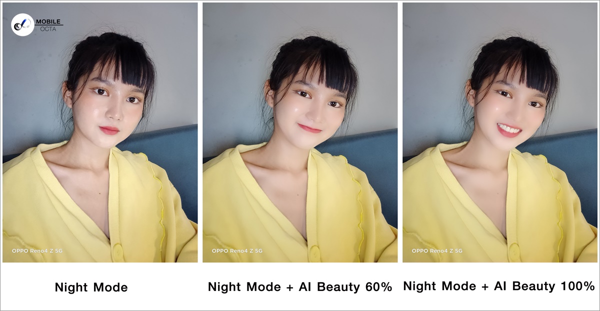 OPPO Reno4 Z 5G มีโหมดถ่ายภาพกลางคืนแบบ Ultra Dark Mode ทั้งในมุมปกติ และแบบมุมกว้าง (Ultra Wide-Angle) ด้วยเทคโนโลยี Multi-Frame Noise Reduction กับเทคโนโลยี HDR พร้อม Noise Reduction ที่ช่วยลดการเกิด noise บนภาพ รวมถึง Anti-Shake Effects กับ High-Light Suppression ที่ช่วยเพิ่มไดนามิกให้กับภาพ