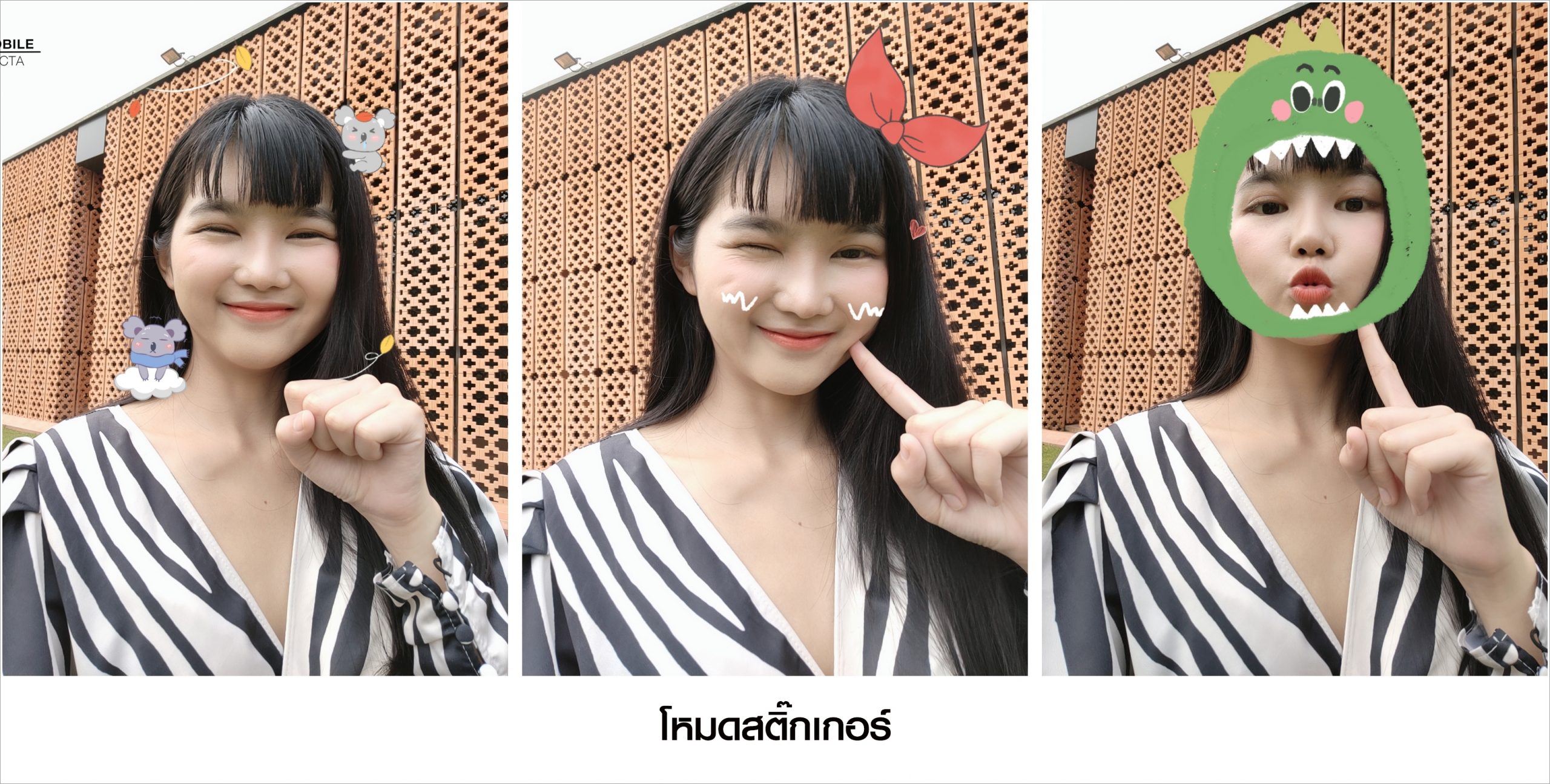 ภาพถ่ายด้วยโหมดสติ๊กเกอร์ที่มีให้เลือกหลายแบบตามใจชอบ