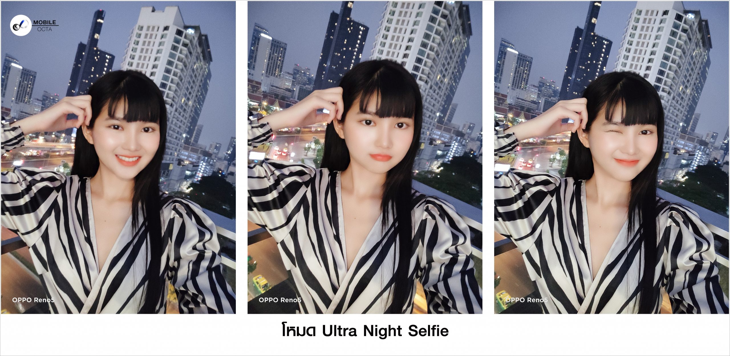 OPPO Reno5 มาพร้อมโหมด Ultra Night Selfie ที่ช่วยปรับภาพให้มีความคมชัด และเพิ่มความสว่างให้กับพื้นหลังที่มีแสงสลัว และตัวบุคคลในภาพ