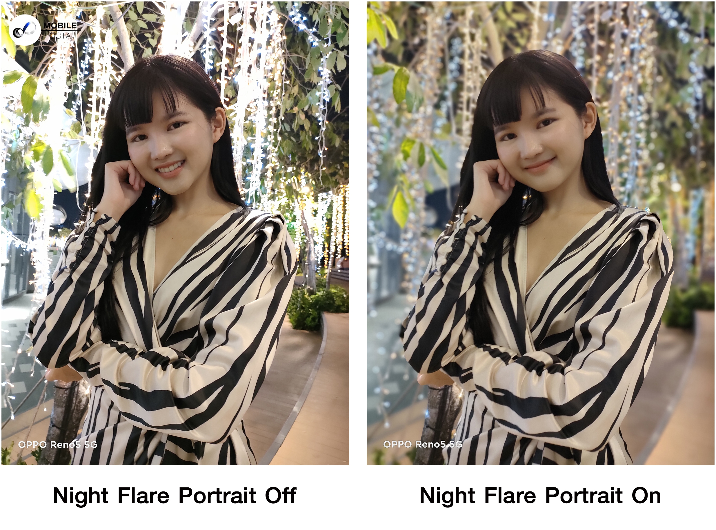 เป็นฟีเจอร์พิเศษของ OPPO Reno5 Series ที่ให้ภาพ Portrait ในตอนกลางคืนมีความคมชัดและสว่าง สดใส มาพร้อมกับเอฟเฟกต์ bokeh ที่เป็นธรรมชาติโดยมีกลไกในการช่วย ซ้อนทับดวงไฟโบเก้บนพื้นหลัง ท าให้ได้ผลลัพธ์ที่เหมือนกับการถ่ายภาพ ด้วยกล้อง DSLR