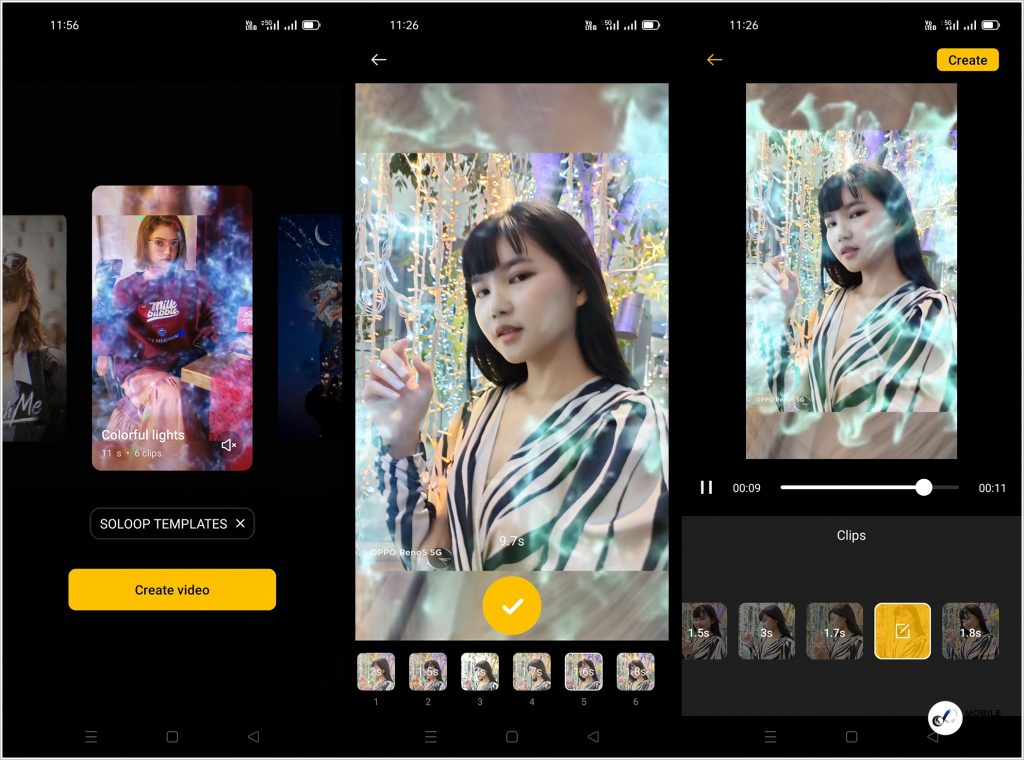 แอปตัดต่อวิดีโออัจฉริยะเฉพาะของ OPPO ที่มาพร้อมฟีเจอร์ใหม่ Soloop Templates ใน OPPO Reno5 ช่วยให้งานตัดต่อวิดีโอเป็นเรื่องง่าย โดยสามารเลือกสร้างวิดีโอได้โดยอัตโนมัติ (Autu Generate) เพิ่มฟิลเตอร์ เพลง และเลือกเทมเพลตได้โดยตรงจากอินเทอร์เฟซของกล้อง หรือถ่ายวิดีโอให้เหมือน Influencer ได้ด้วยเทมเพลต Soloop ก็ทำได้ง่ายด้วยตัวคุณเอง