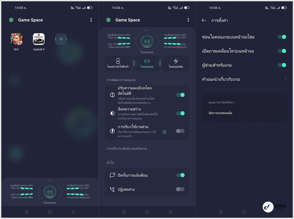 รวมถึง Gamer Mode ที่ช่วยปิดกั้นการรบกวนต่างๆ ในระหว่างเล่นเกม เพื่อให้เล่นเกมได้อย่างสนุกไม่มีสะดุด ไม่ว่าจะเป็นการซ่อนแถบสถานะ หรือปุ่มนำทาง และปิดระบบการสั่งการด้วยท่าทาง, ปิดการใช้งานหน้าจอ, ปิดการใช้งานหน้าต่าง Floating, Assistive Ball, Quick Return Button และ Smart Sidebar
