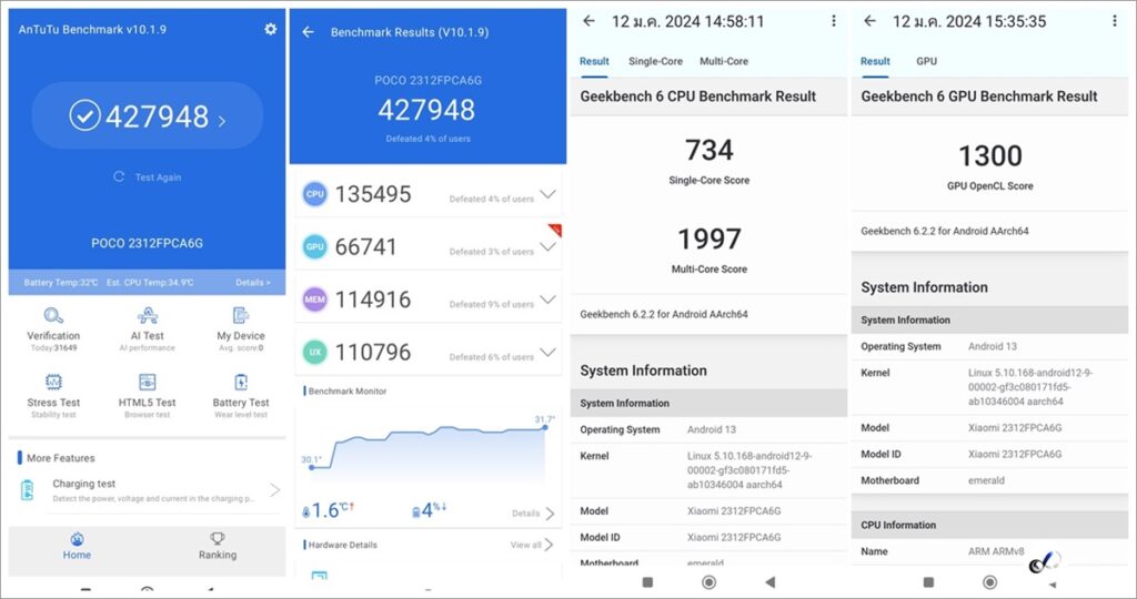 ในการทดสอบ Benchmark ด้วยโปรแกรมต่างๆ ผลการทดสอบของชิปเซ็ต MediaTek Helio G99-Ultra คะแนนถือว่าทำได้ค่อนข้างดีสำหรับมือถือระดับนี้ครับ โดยมีคะแนนทดสอบเกือบๆ เท่าชิป Snapdragon 695 เล็กน้อยเท่านั้น ทำให้ชิปตัวนี้ค่อนข้างทำคะแนนได้ในระดับสูงสำหรับมือถือกลุ่มนี้ครับ