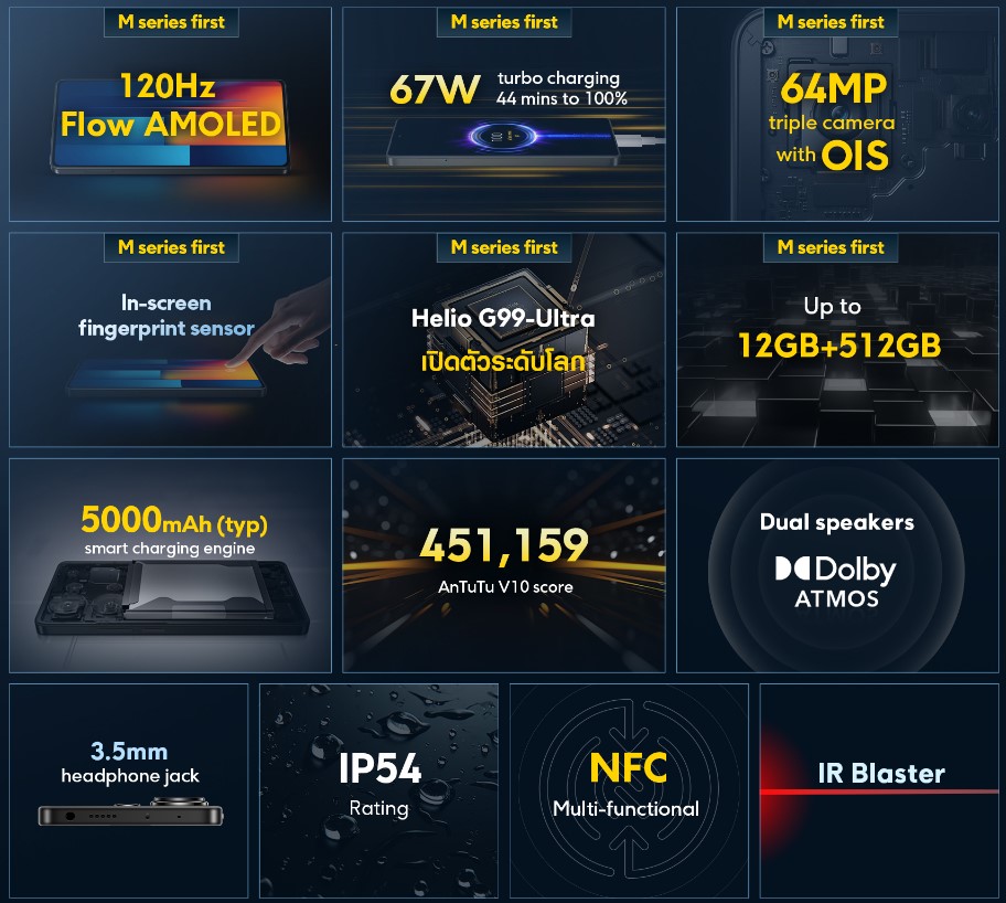 แถมแบตเตอรี่ที่ให้มาถึง 5000mAh ที่อึดมาก รวมถึงได้ระบบชาร์จเร็ว 67W Turbo Charge ที่รวดเร็ว ชาร์จไม่ถึง 1 ชม. ก็เต็ม 0-100% ได้ง่ายๆ ทำงาน Multi-Tasking ลื่นๆ ด้วย RAM 12GB และโหลดแอป เกม หรือซีรีย์เรื่องโปรดได้เพียบๆ บนเมมภายใน 512GB และเสริมได้อีกผ่าน microSD Card มีกล้องถ่ายภาพ 3 ตัวครบช่วงถ่ายสนุก และมีดีไซน์สวยงาม บางเบา น่าใช้
