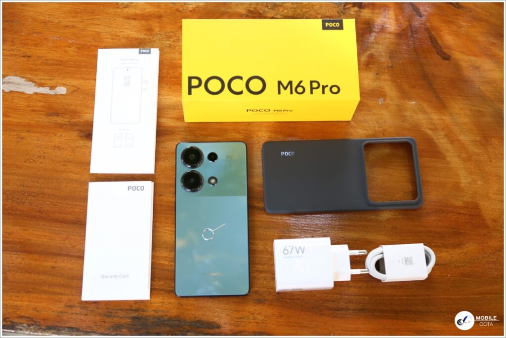 กล่องของ POCO M6 Pro ยังมาพร้อมกับกล่องสีเหลืองตัดดำตามสไตล์ของแบรนด์ครับ โดยภายในกล่องมาพร้อมกับอุปกรณ์ค่อนข้างครบพร้อมใช้ครับ ซึ่งประกอบไปด้วย