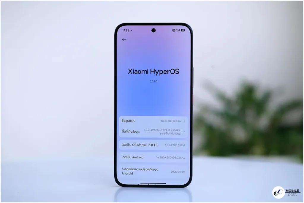POCO X8 Pro Max รันบนระบบปฎิบัติการ Xiaomi HyperOS 3 ที่ครอบทับ Android 16 มาตั้งแต่แกะกล่อง ระบบใหม่นี้เน้นความลื่นไหล การใช้พลังงานที่ต่ำลง และฟีเจอร์ AI ที่เพิ่มเข้ามา นอกจากนี้ POCO ยังการันตีอัปเดตเวอร์ชัน Android นาน 4 ปี และแพตช์ความปลอดภัยนานถึง 6 ปี