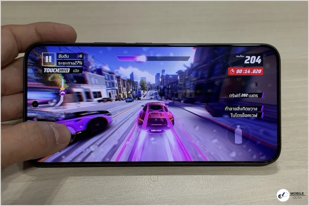 โดยตั้งค่า FPS ที่ระดับสูง ด้วยชิปเซ็ท Snapdragon 7s Gen 3 สามารถเล่นบนเฟรมเรทสูงได้สบาย ๆ และถ้าเลือกตั้งค่าเกมให้เป็นค่าเริ่มต้น ก็จะสามารถตีป้อมได้ค่อนข้างลื่นเลยทีเดียว และถ้าเล่นนานๆ ตัวเครื่องไม่ร้อนมากด้วย