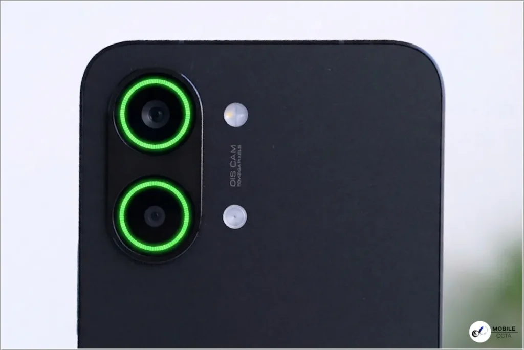 ส่วนการจัดวางโมดูลกล้องด้านหลังได้รับแรงบันดาลใจมาจากความเร็วและสนามแข่งรถ โดยปรับมาใช้ดีไซน์ เลนส์กล้องแนวตั้ง แยกวงแหวนเลนส์กล้องออกจากกันอย่างชัดเจน 2 วงดูสะอาดตา ผสานกับดีไซน์ที่เน้นความสมมาตร แบบมินิมอล